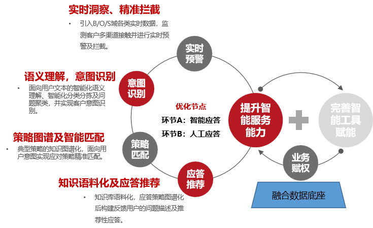图4 TPCH测试性能对比图 通过行业通用的TPCH性能测试方案对比,本方案实现计算和存储资源自由调度,支持秒级在线动态扩容,性能为Greenplum的8倍以上,参见图4。 四、基于大模型技术的“知策应答”工具及插件 基于对客服大区生产一线调研,本产品的研究目标是充分挖掘客户服务全链条中的典型痛点,通过梳理各环节耗时、低效的典型业务场景,重点聚焦诉中处理环节,率先将行业热点的大语言模型技术与中国联通网络运营、客户服务场景相结合。从而降低坐席知识及技能要求,提升坐席的工作效率,提升在线办结率、提升工单建单质量,实现效能提升及数智化赋能。 通过对客服一线的调研,当前客服代表主要工作包括用户对话、信息获取、来话问题总结、策略及知识应答、建单派单等。基于此背景需求,本产品的研究目标是以AI大语言模型为技术基础,以减少坐席操作环节,降低操作时长、提高客服知识性信息辅助为目标,开展基于对话上下文的用户意图识别及问题总结,优秀案例提取策略及解决方案,客服应答知识精准匹配,应答内容推荐及自动生成辅助等研究,并自主研发了“知策应答”工具。 “知策应答”工具主要解决语义理解准确率低、意图识别不精准、问题分类分拣准确度及效率低,应答环节精准匹配的解决策略少等问题。基于在/热线对话语料及工单全流程处理数据,构建意图识别模型及问题分类模型,抽取优秀坐席对话中的话术、方法、策略及知识并形成策略图谱,构建智能匹配模型,为坐席提供意图参考、问题分类参考及解决策略参考。面向建单场景的意图打标,初步完成识别模型,并持续收集在线对话语料,训练意图识别模型并调优,提取优秀坐席会话数据并沉淀其典型对话方法及解决方案,与策略图谱、知识库任务对接。 “知策应答”工具主要解决语义理解准确率低、意图识别不精准、问题分类分拣准确度及效率低,应答环节精准匹配的解决策略少等问题。基于在/热线对话语料及工单全流程处理数据,构建意图识别模型及问题分类模型,抽取优秀坐席对话中的话术、方法、策略及知识并形成策略图谱,构建智能匹配模型,为坐席提供意图参考、问题分类参考及解决策略参考。面向建单场景的意图打标,初步完成识别模型,并持续收集在线对话语料,训练意图识别模型并调优,提取优秀坐席会话数据并沉淀其典型对话方法及解决方案,与策略图谱、知识库任务对接。 “知策应答”工具基于主流NLP及LLM模型,实现投诉用户的实时意图识别、情感分析,并根据用户的基础属性、用户等级等信息,实现智能化应答生成、最优策略推荐等,提升在线客服人员的工作效能。目前,“知策应答”工具已实现3600余篇、2.4万余条知识的推理查询能力。 五、基于AI及大数据的移网投诉分析支撑系统 本产品从一线在处理网络类用户投诉时数字化、智能化工具手段不足等痛点问题出发,基于对O域数据自主解析能力,将用户投诉数据与实时网络信令数据、用户属性信息进行关联分析,形成从属性、行为、轨迹、业务、感知的全息用户洞察,打造用户级业务轨迹回溯的实时数据模型,并结合投诉用户描述的语义理解,形成知识图谱对网络问题进行定界初判,提升针对用户投诉的快速、全面、深度的问题和原因掌握,并通过分布式解析能力的移网投诉分析支撑系统对一线进行赋能,具体包括以下功能: 1、投诉语义理解及智能化分拣 客户投诉的问题描述是移网投诉处理的最初依据,也是客户的直接问题体现信息。客户投诉的问题描述方式千差万别、表达内容复杂度及冗余度高,同时存在人工分拣成本高、易出错、流程复杂等问题,因此投诉语义理解主要研究内容包括:构建面向电信投诉领域的中文语料库和多级规则库,并基于自然语言处理技术研发投诉语义识别及智能化分拣系统。 (1)投诉语义理解数据源 投诉语义理解的主要处理对象包括投诉工单、投诉文本记录、投诉语音记录等基于语音识别技术转化而成的文本记录。 (2)智能语义理解技术架构 采用基于规则库及深度学习技术的融合模型,同时引入模糊条件逆向判决机制及词法分析融合算法,针对嵌套性及模糊语义问题,提升分拣及校验准确性;引入多模式模糊匹配模型提升低质投诉文本识别及信息抽取准确性。 (3)投诉语义识别及智能化分拣系统功能 • 问题分拣校验:采用基于规则库及深度学习技术的融合模型,实现移网投诉问题分层分类的自动化分拣,并与客服派单系统的分解结果,进行智能化校验,实现投诉问题校正、投诉分类重拣和投诉信息增录。 • 关键信息抽取:研发基于关键字规则库及深度学习技术的融合模型,实现用户投诉文本的分层级信息抽取,抽取内容包括:用户网络基本诉求、网络使用体验、网络及终端制式、问题发生场景、问题复现频率等。 • 投诉信息分析:研发智慧语义模型,针对投诉语音(转文本)或记录文本内容进行客户情感分析、热点问题挖掘、关联分析及预测。 目前投诉语义理解及智能化分拣已实现模块化开发并内嵌入投诉数据底座层,可在有需求的场景下进行直接部署。 2、投诉用户业务轨迹数字化回溯及洞察 基于B+O融合数据汇聚形成的数据底座,将用户投诉数据与实时网络信令数据、用户属性信息进行关联分析,形成从属性、行为、轨迹、业务、感知的全息用户洞察,打造用户