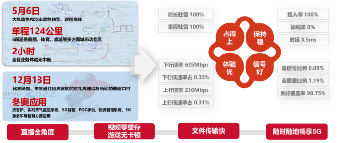 图2 5G 200M网络体验测评 凭借构筑千兆5G网络并助推多元化生活在中国的蓬勃发展,5G Capital项目在2022年的世界移动大会上荣获GSMA GLOMO“5G产业合作伙伴奖(5G Industry Partnership Award)”,北京联通也由此成为首家获得GLOMO大奖的省级运营商,创造了一个新的纪录。 六、5G-A连片验证,开启首都5G新阶段 5G-A又被称为5.5G,是5G到6G承上启下的关键阶段,更是迈向智能世界的必由之路。相比5G,5G-A将带来10倍网络能力的提升,包括“10倍体验提升、10倍联接数提高、10倍时延降低、10倍能效增强”等,并新增通感一体、无源物联、内生智能等革命性功能,满足全场景下多元化的业务需求,重构数智经济新范式。 2024年初,北京联通完成了5G-A规模组网示范,实现了市中心金融街、历史建筑长话大楼、大型综合性体育场北京工人体育场三个重点场景的连片覆盖。作为全国首个5G-A规模组网示范,其为5G-A网络和应用的规模复制提供了战略参考,同时亦标志相关技术、产品和方案已具备商用条件。 5G-A规模组网示范面临覆盖、移动、容量和感知上的新挑战,北京联通在产品新能力、网络新协同、频段新聚合、感知新优化四方面进行了“科学新应对”。 通过四大技术创新突破,将5G-A城区典型场景以高低频协同1:1组网的愿景带入现实,打造5G-A极致体验的网络。 金融街5G-A规模组网示范区路线总长3.9公里,从长话大楼乘体验车参观全程约20分钟。在车载网络测评中,5G-A用户下行峰值速率达到10Gbps、连续性体验超过5Gbps,切实做到了10倍体验提升。 七、总结 特大型城市5G规模商用、数字化运营能力建设、北京智慧冬奥精彩应用、全球最大规模200M大带宽网络建成落地、智慧网络运营定义、5G-A连片验证等等,5G Capital在过去四年中始终快人一步,在为首都用户带去卓越5G体验的同时,也向全世界展现了如何建好和用好5G,北京联通5G发展之路参见图3。